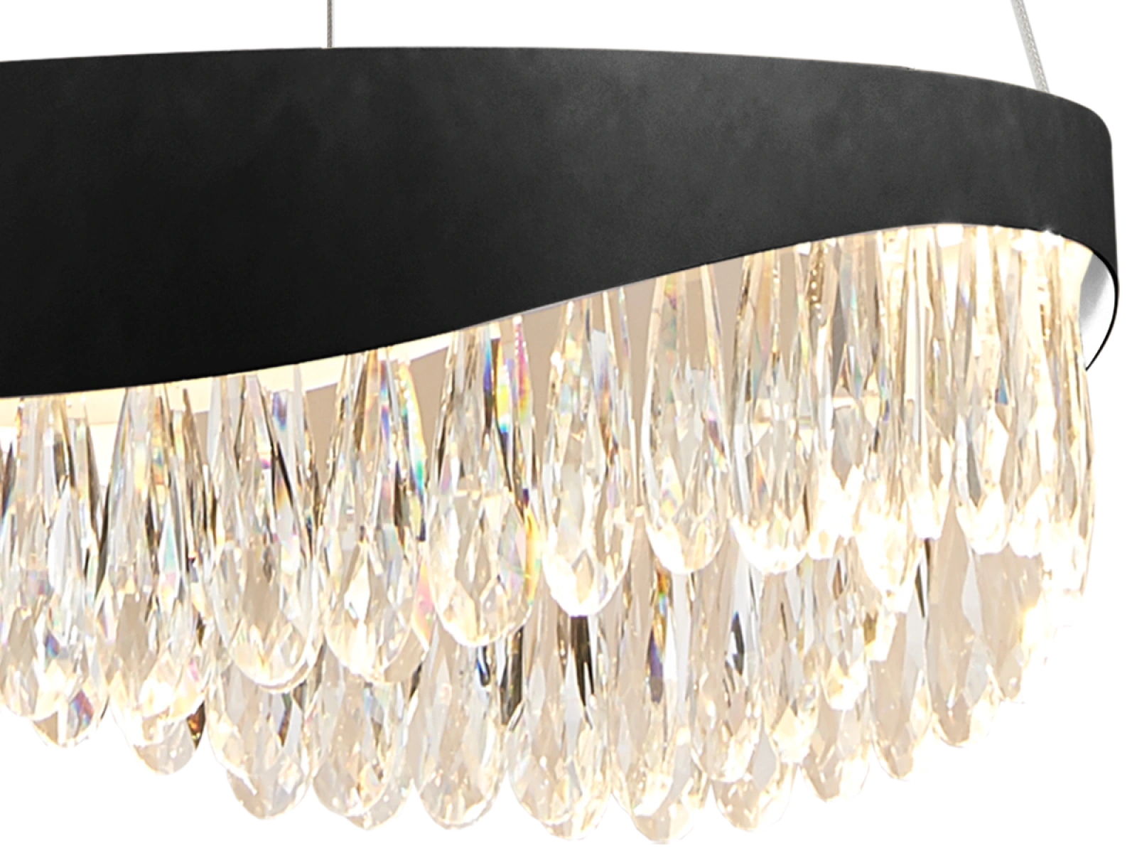 Podstawa oprawy składa się z metalu ze stali nierdzewnej o wysokiej jakości wykończeniu, uzupełnionego precyzyjnie wyciętymi kryształami, które sprzyjają skutecznemu odbijaniu światła. Dzięki wysokiej jakości technologii przetwarzania, materiał zachowuje zarówno stabilność, jak i walory estetyczne.