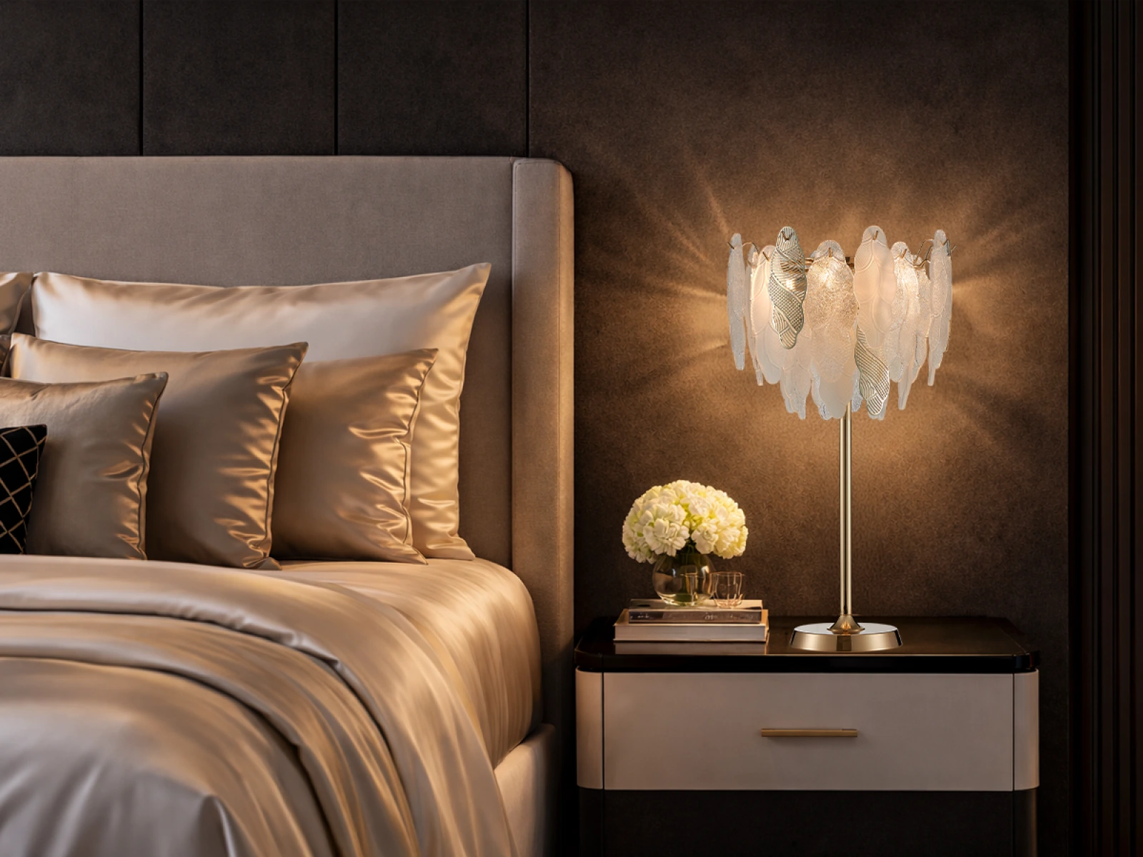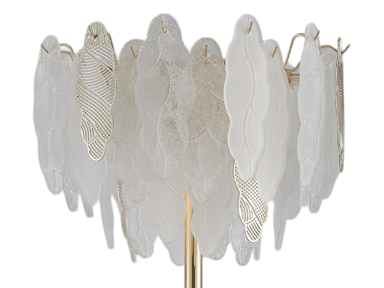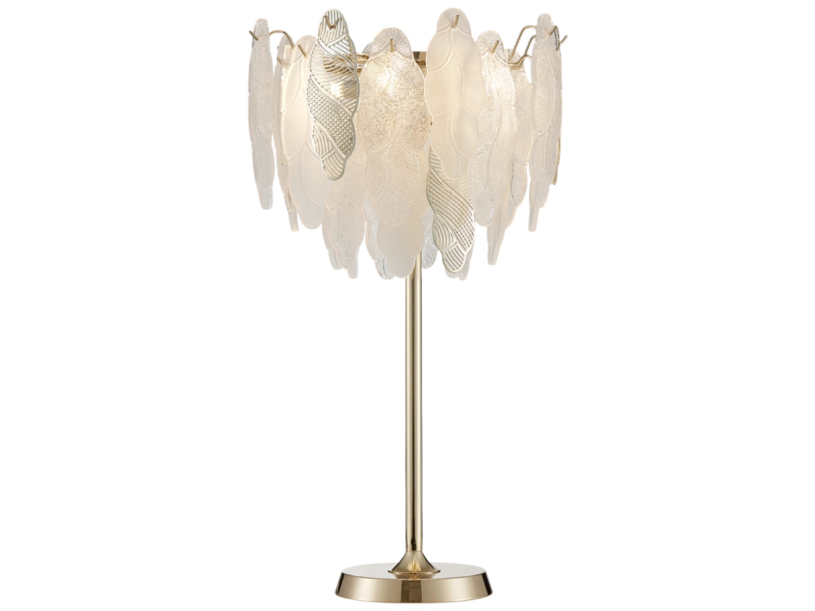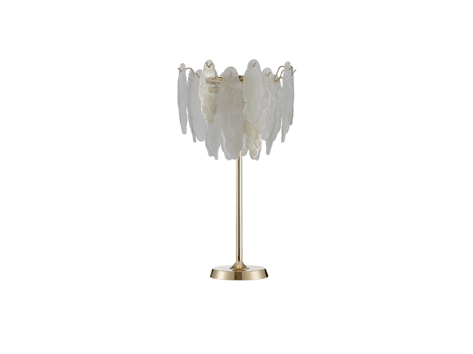 Delikatna struktura szklanych elementów w połączeniu z dekoracyjnymi metalowymi detalamipodkreśla luksusowy i wyrafinowany charakter tej kolekcji.