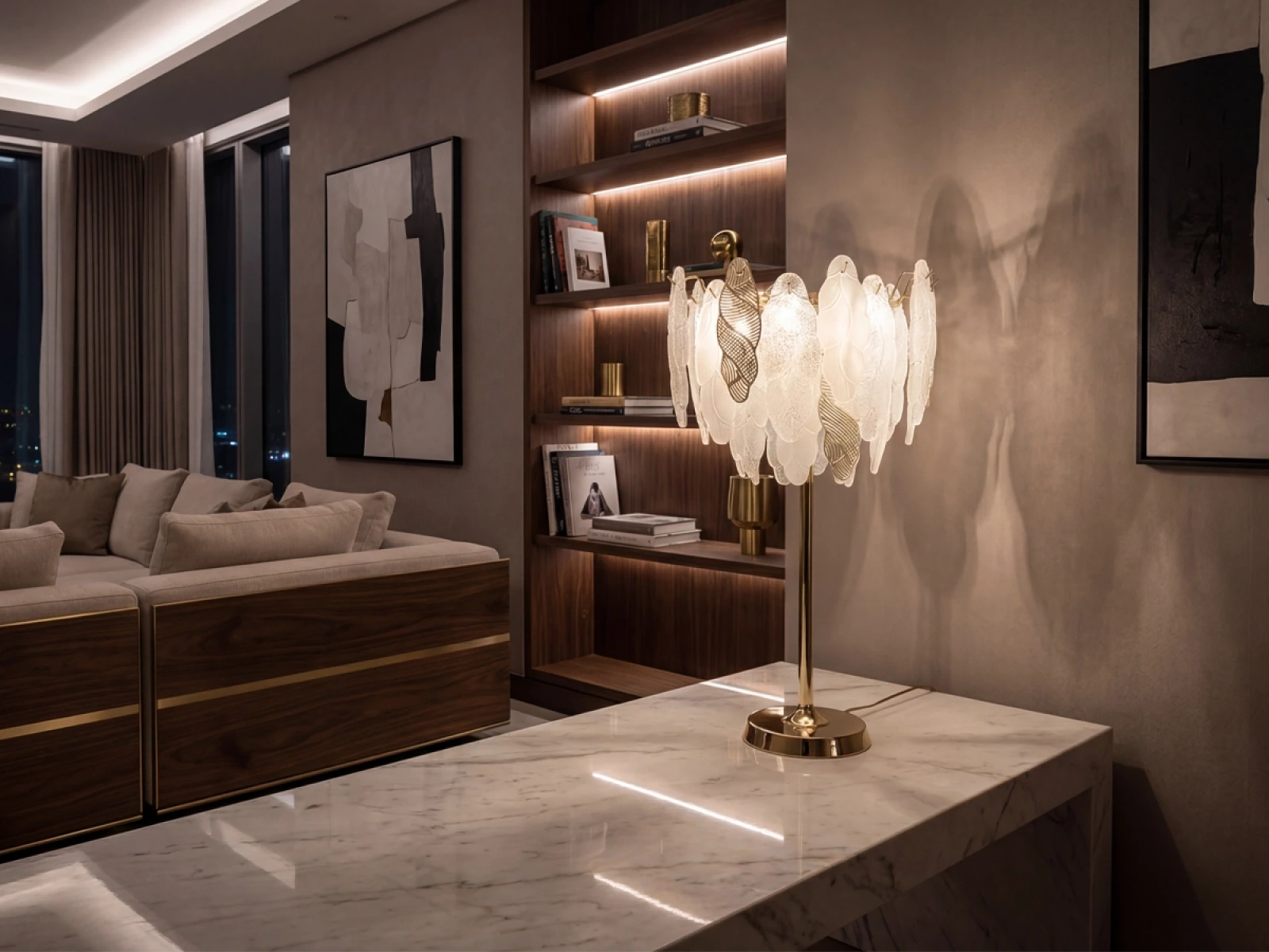 Lampa stołowa CHOREO marki VIZARDI to eleganckie, designerskie oświetlenie o wyrazistym, dekoracyjnym charakterze. Precyzyjne rozmieszczenie poszczególnych elementów tworzy harmonijną kompozycję o wyjątkowym efekcie świetlnym i dodaje przestrzeni wyrazistego akcentu wizualnego. Oprawa sprawdzi się w salonie, jadalni, sypialni oraz wnętrzach reprezentacyjnych.