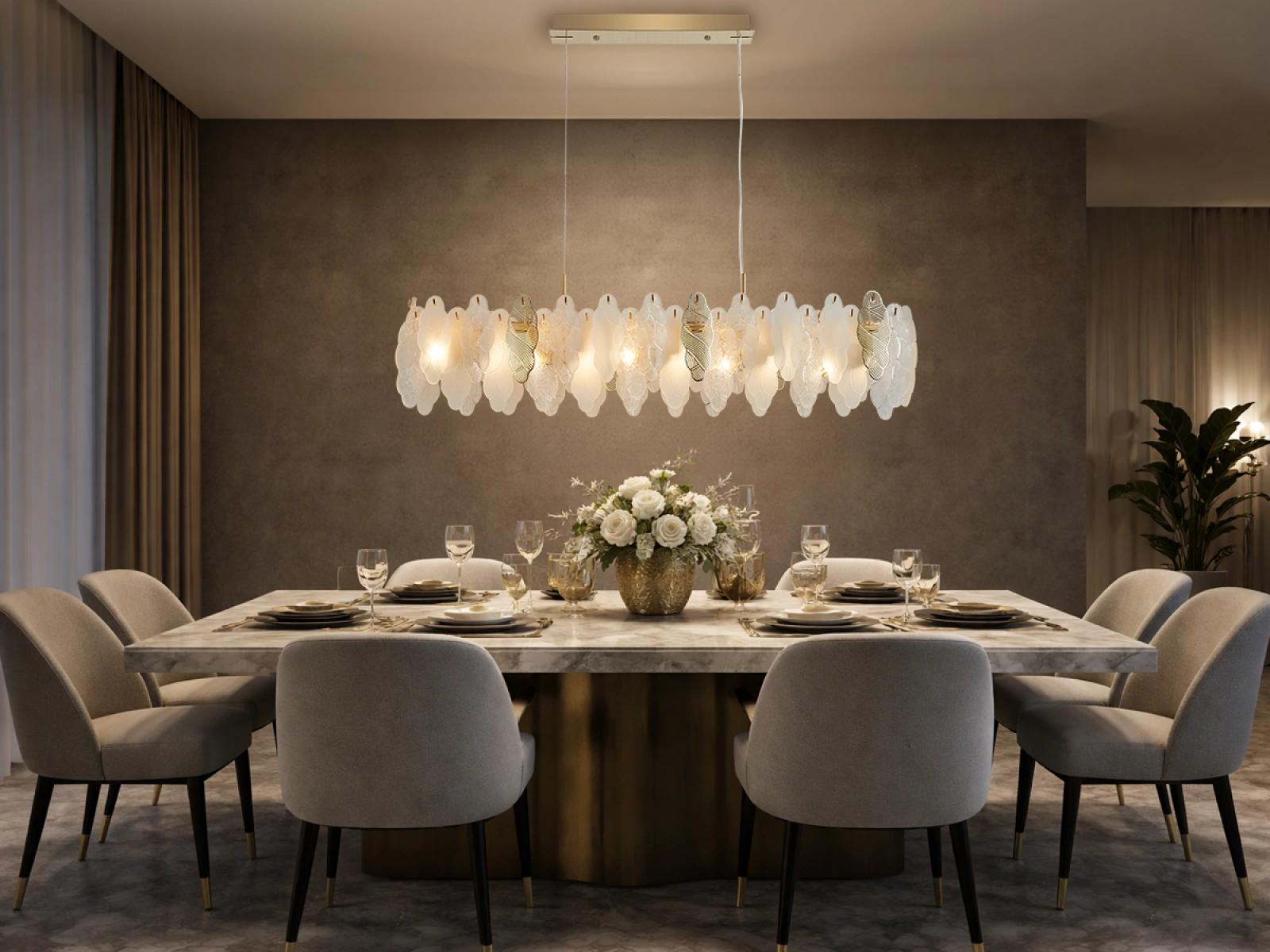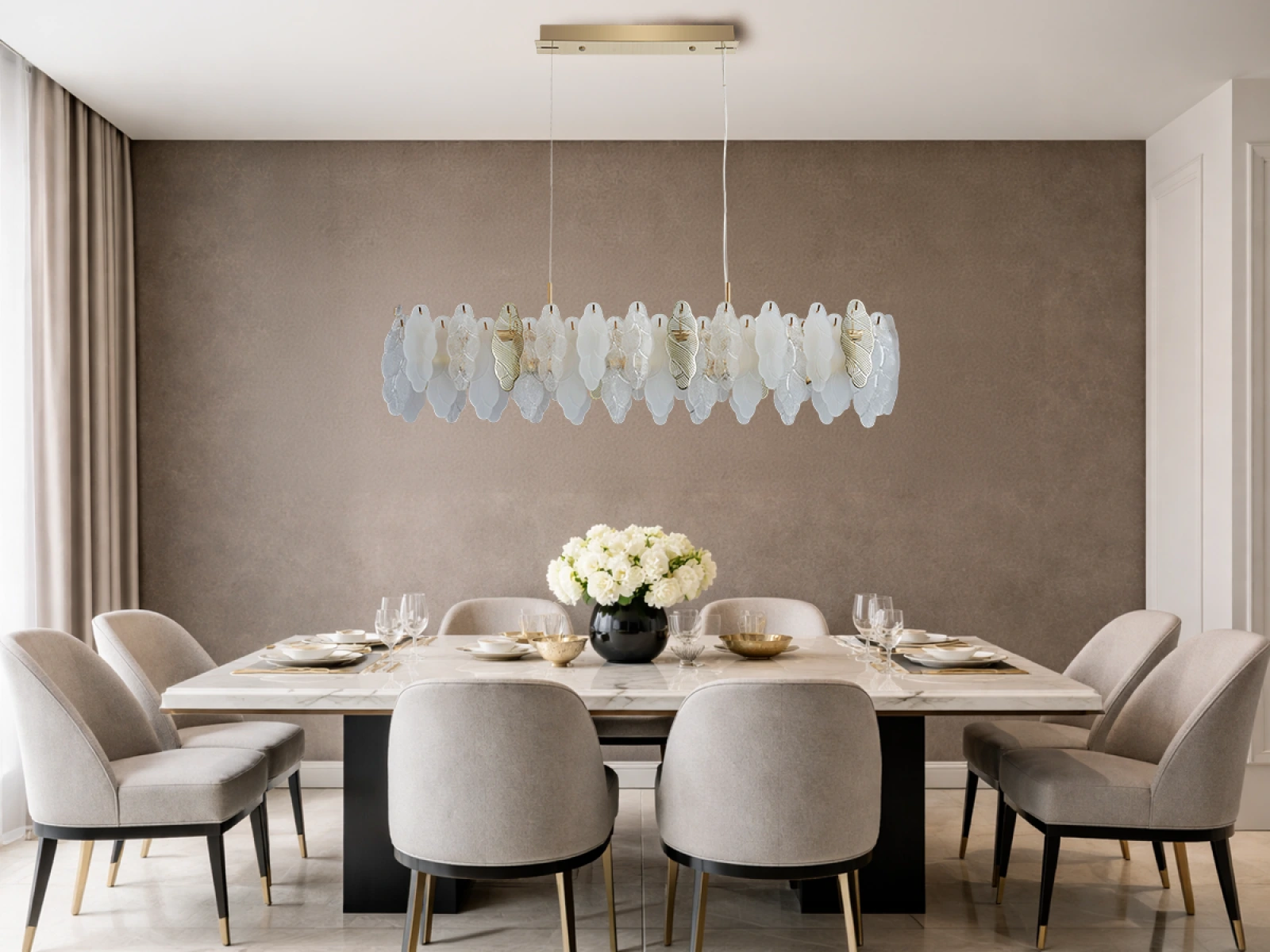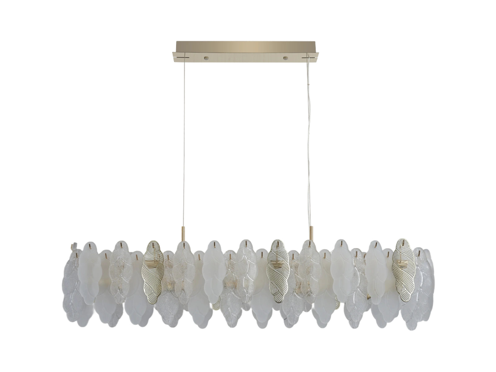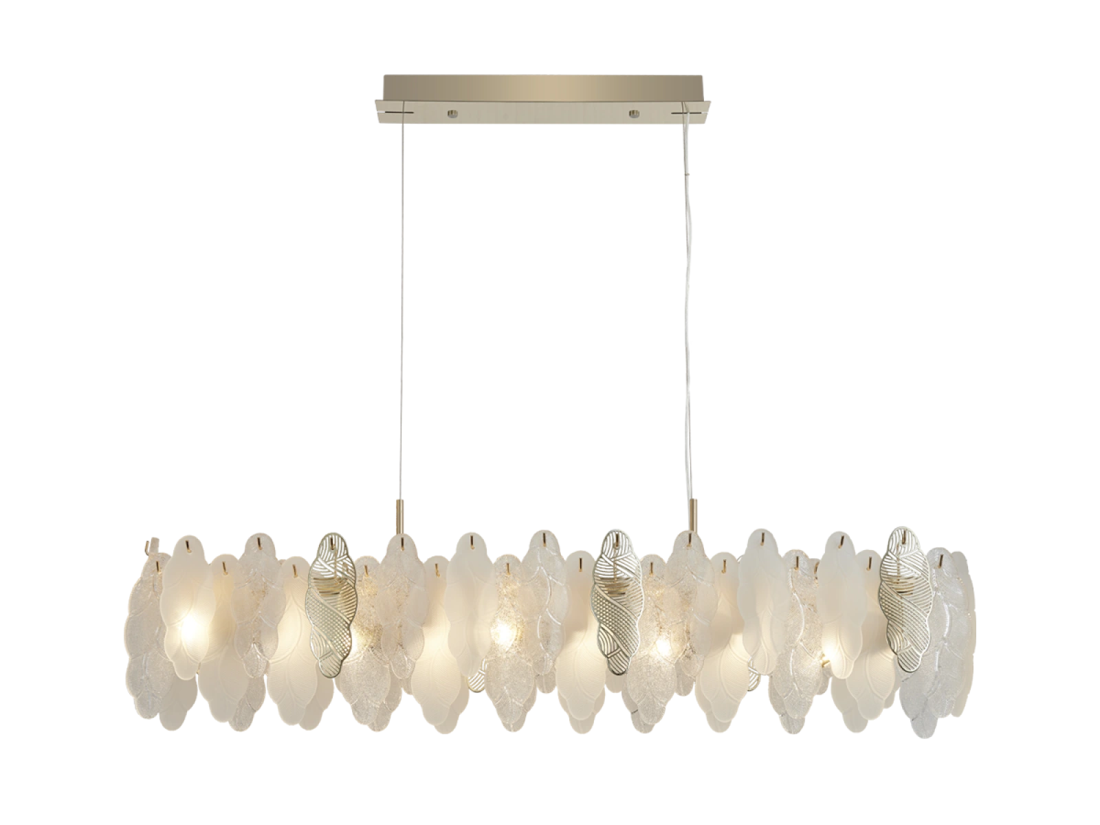 Delikatna struktura szklanych elementów w połączeniu z dekoracyjnymi metalowymi detalami podkreśla luksusowy i wyrafinowany charakter tej kolekcji.
