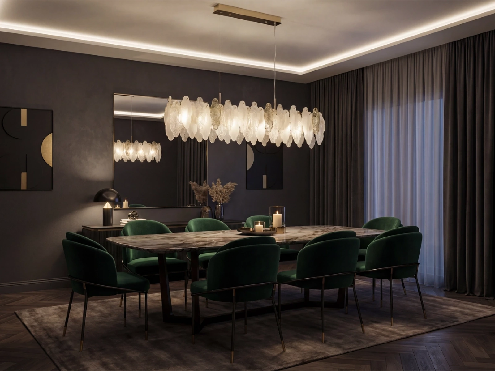 Oprawa wisząca CHOREO marki VIZARDI to eleganckie, designerskie oświetlenie o wyrazistym, dekoracyjnym charakterze. Precyzyjne rozmieszczenie poszczególnych elementów tworzy harmonijną kompozycję o wyjątkowym efekcie świetlnym i dodaje przestrzeni wyrazistego akcentu wizualnego. Oprawa sprawdzi się w salonie, jadalni, sypialni oraz wnętrzach reprezentacyjnych.