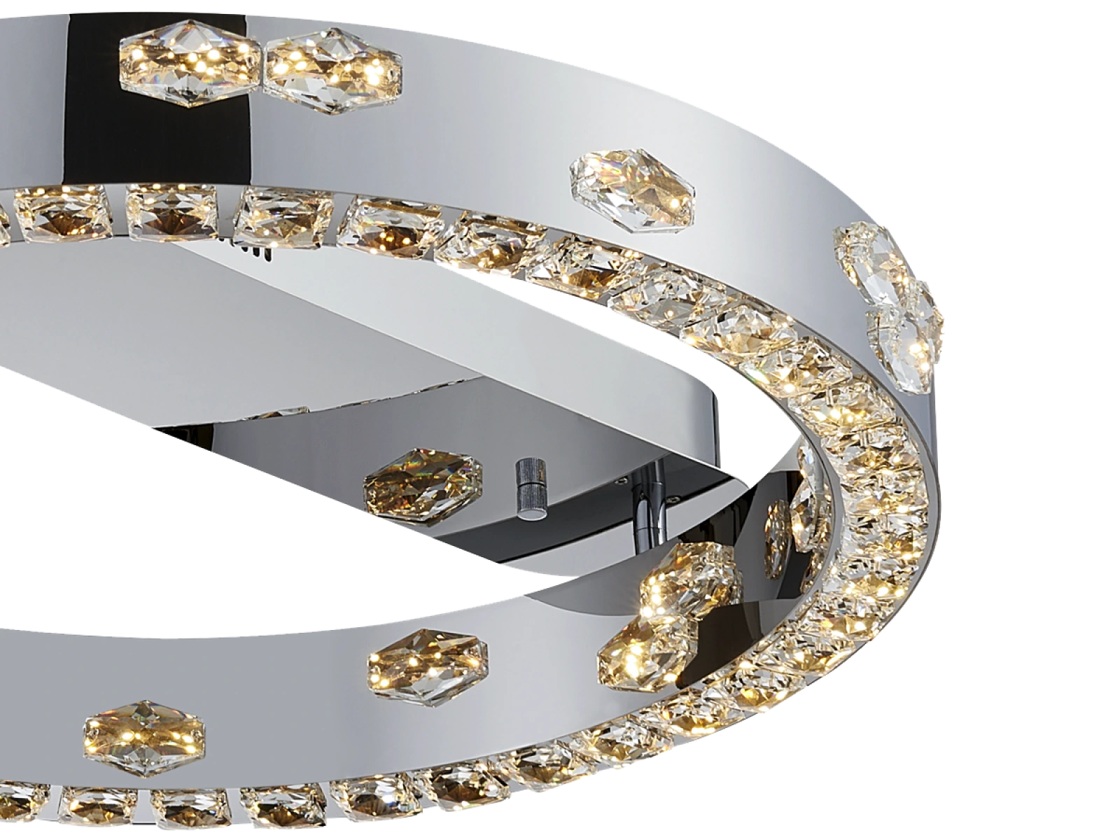 Oprawa wykonana jest z wysokiej jakości metalu ze stali nierdzewnej z chromowanym wykończeniem i uzupełniona precyzyjnie wyciętymi kryształami, które promują odbicie i załamanie światła. Dzięki zastosowanej technologii przetwarzania, materiał zachowuje zarówno stabilność, jak i estetyczny wygląd przez długi czas.