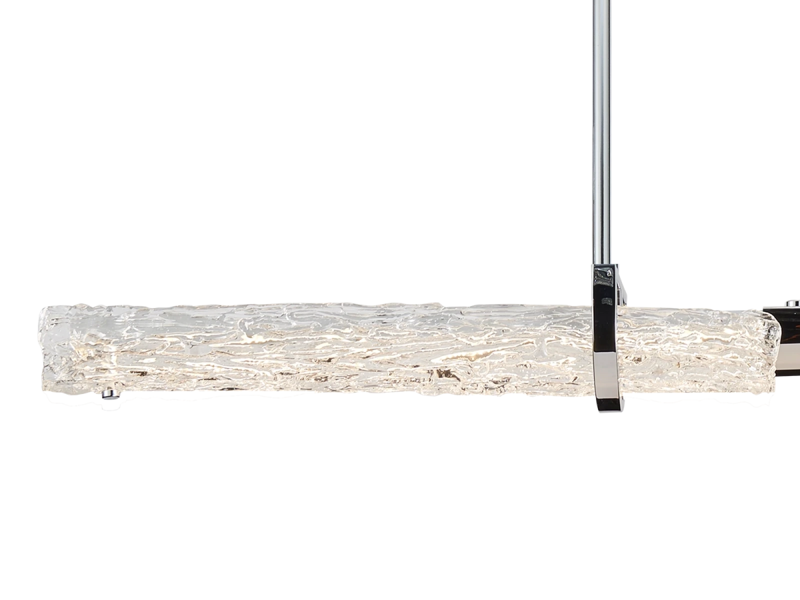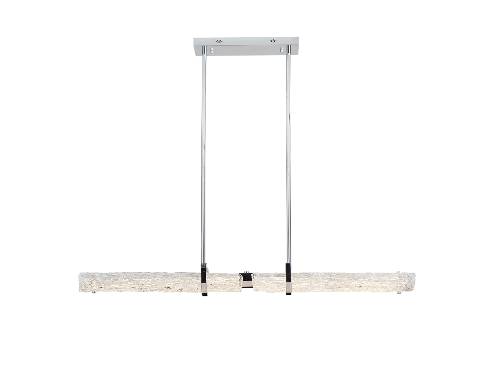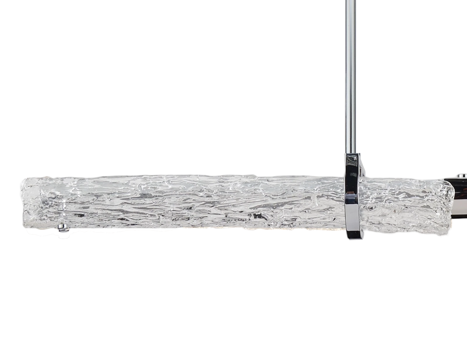 Oprawa wykonana jest z wysokiej jakości metalu ze stali nierdzewnej z chromowanym wykończeniem, co zapewnia długotrwałą trwałość, stabilność i luksusowy wygląd. Szklane elementy z teksturowaną powierzchnią inspirowaną korą zapewniają równomierne i przyjemne rozproszenie światła.
