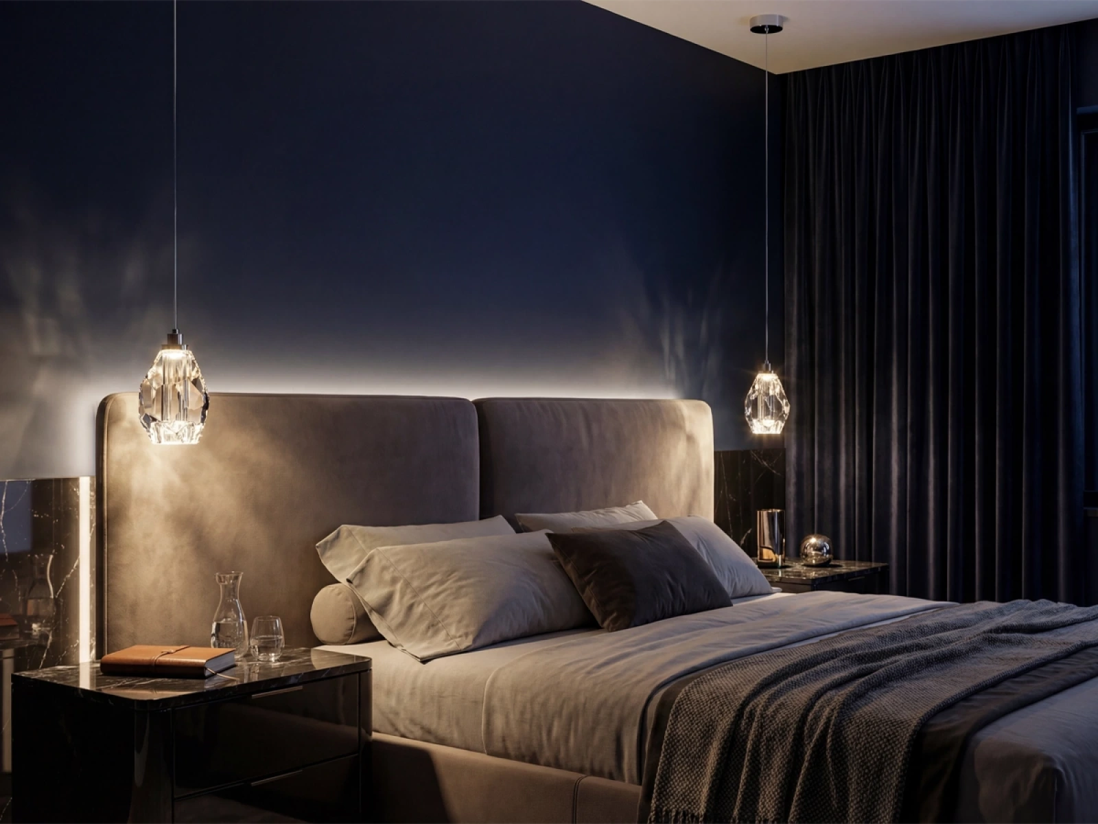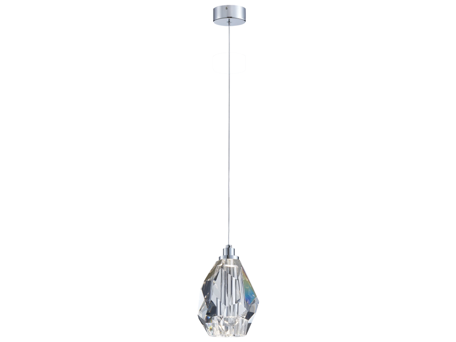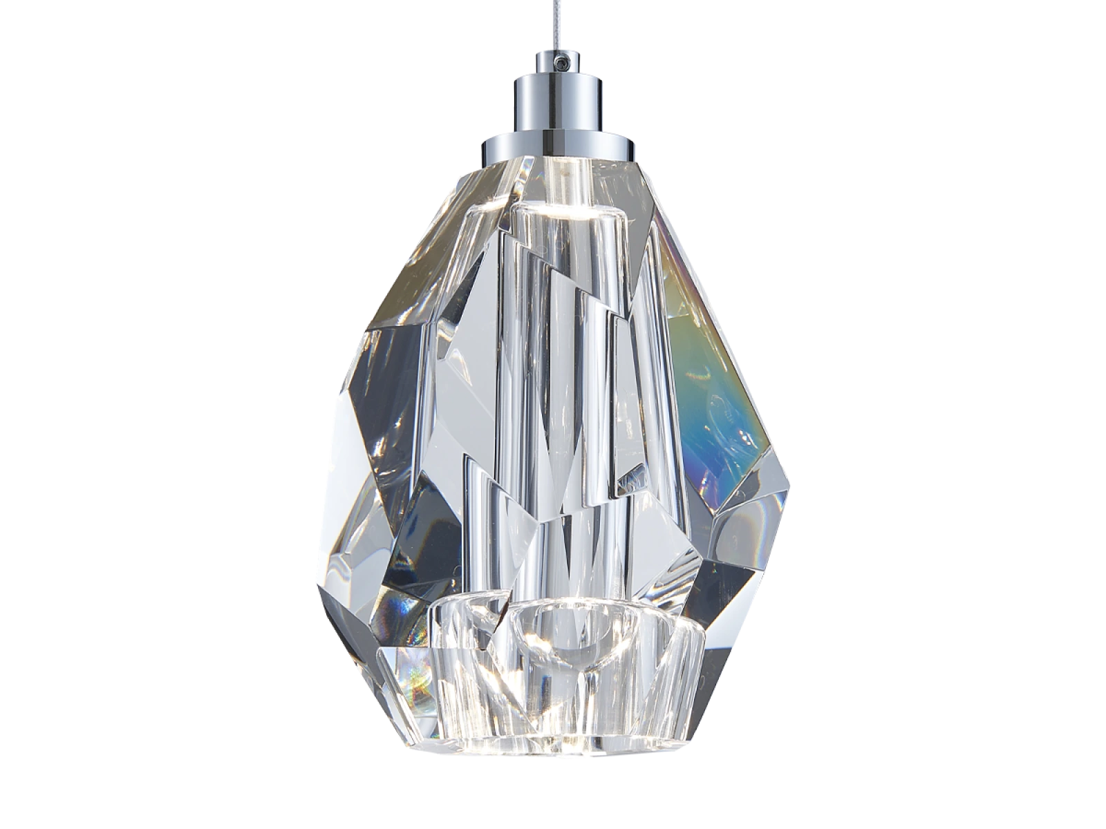 Konstrukcja oprawy wykonana jest z wysokiej jakości stali z chromowanym wykończeniem i uzupełniona precyzyjnie wyciętymi kryształowymi elementami o diamentowej strukturze. Tworzy to wyjątkowy efekt świetlny i luksusowy blask w przestrzeni.