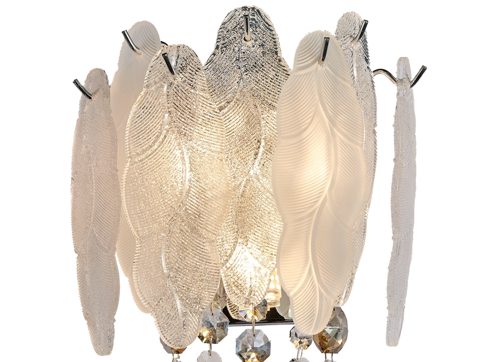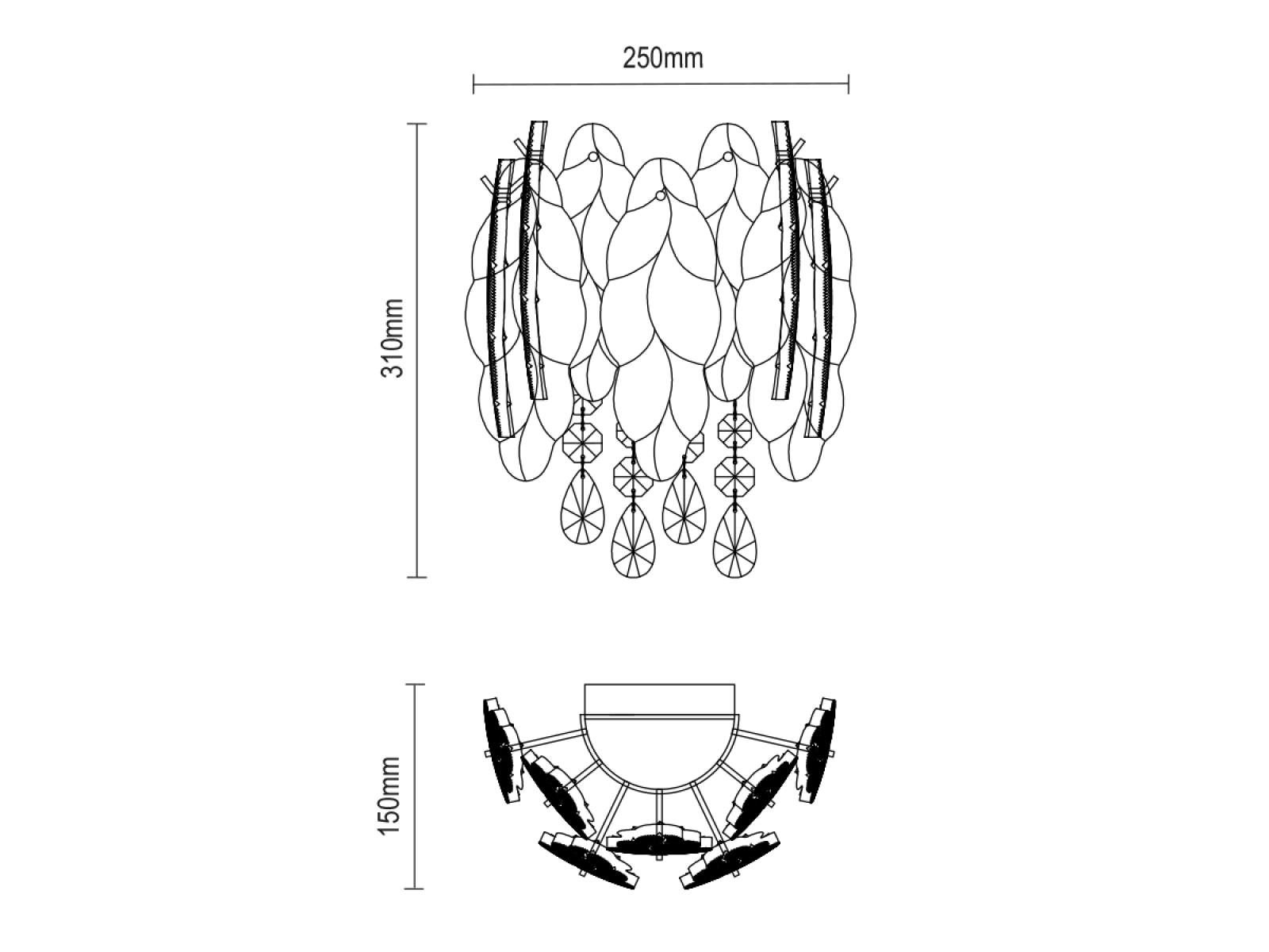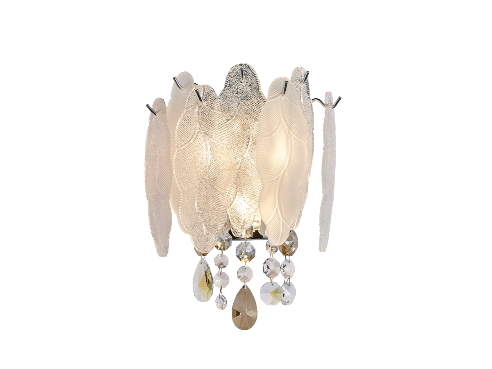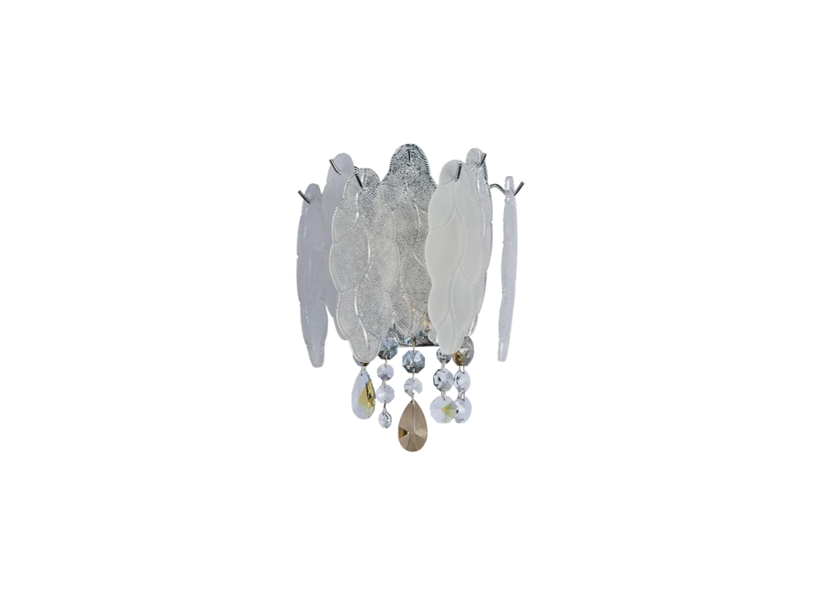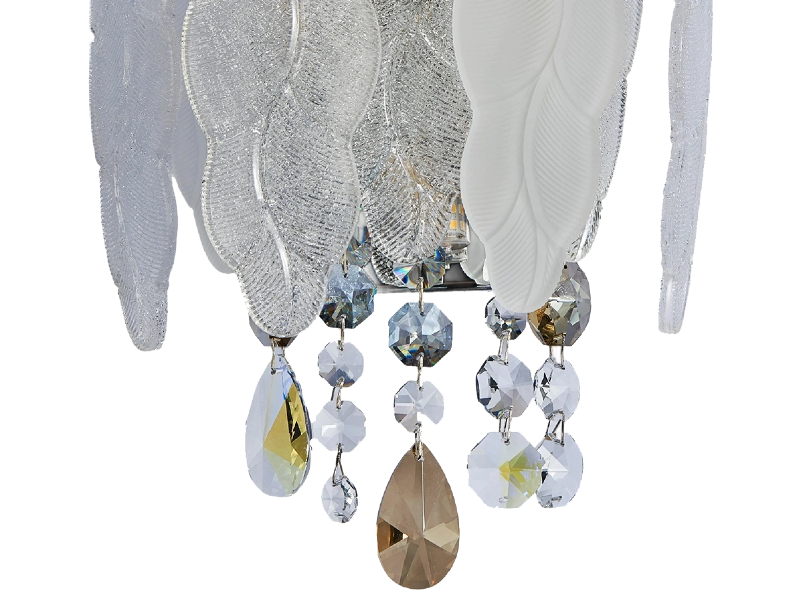 Metalową konstrukcję o wysokiej jakości wykończenia uzupełniają szklane i kryształowe elementy, które delikatnie rozpraszają światło i tworzą subtelny efekt świetlny. Lampa prezentuje się gustownie i ponadczasowo, z dbałością o detale i jakość wykonania.