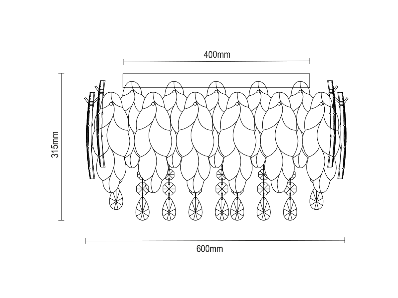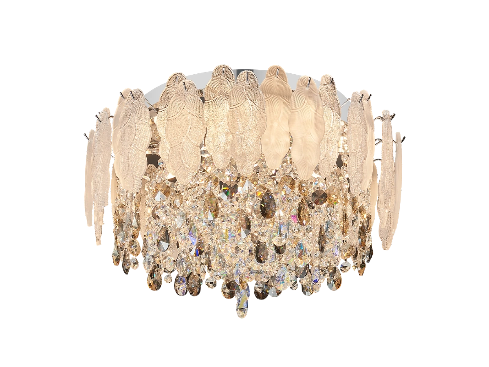 Metalową konstrukcję o wysokiej jakości wykończenia uzupełniają szklane i kryształowe elementy, które delikatnie rozpraszają światło i tworzą subtelny efekt świetlny. Lampa prezentuje się gustownie i ponadczasowo, z dbałością o detale i jakość wykonania.