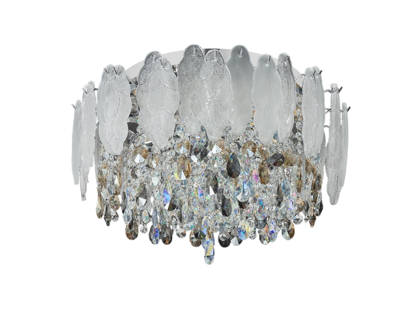 połączenie metalowej konstrukcji z elementami ze szkła i ciętego kryształu