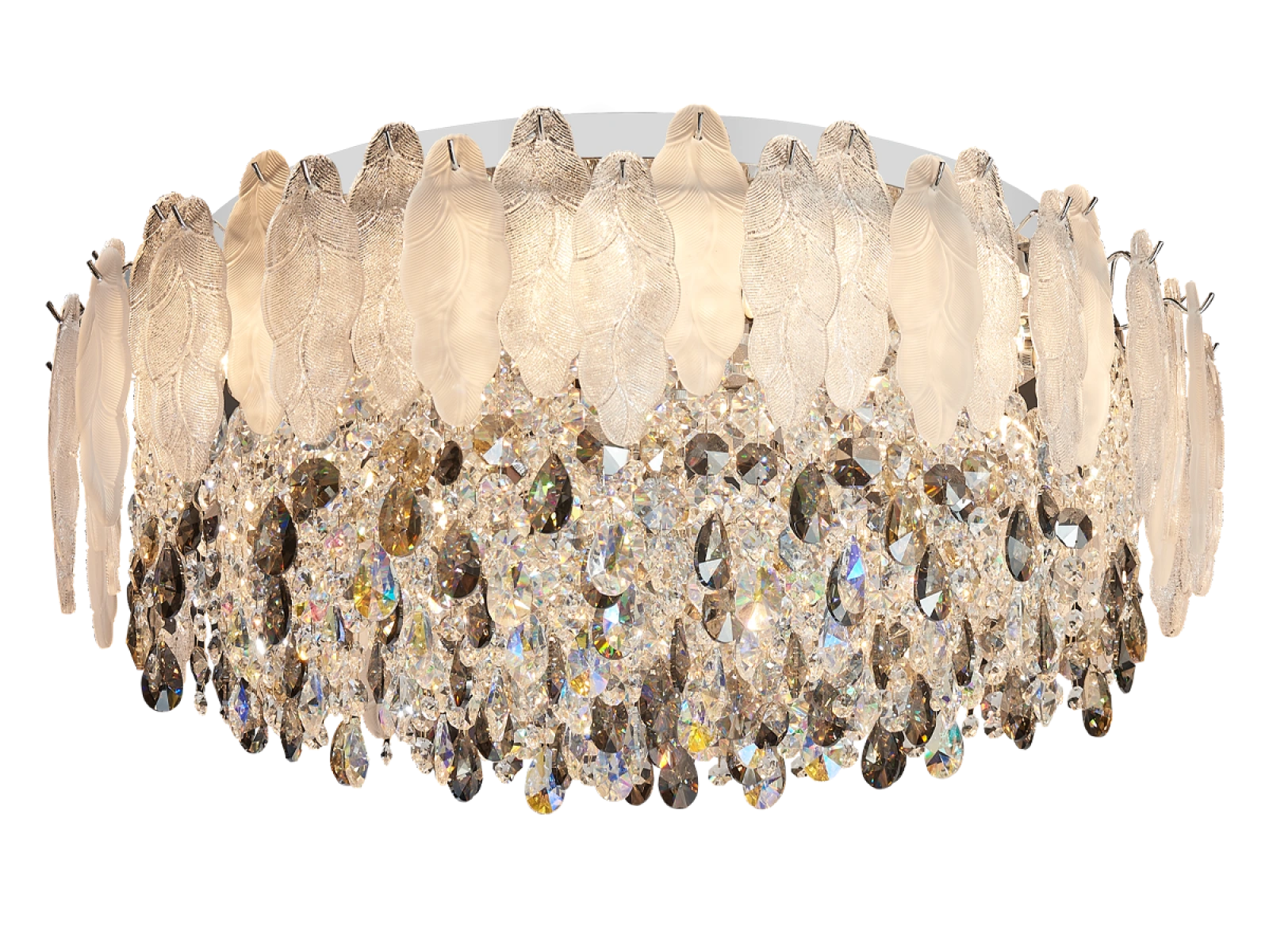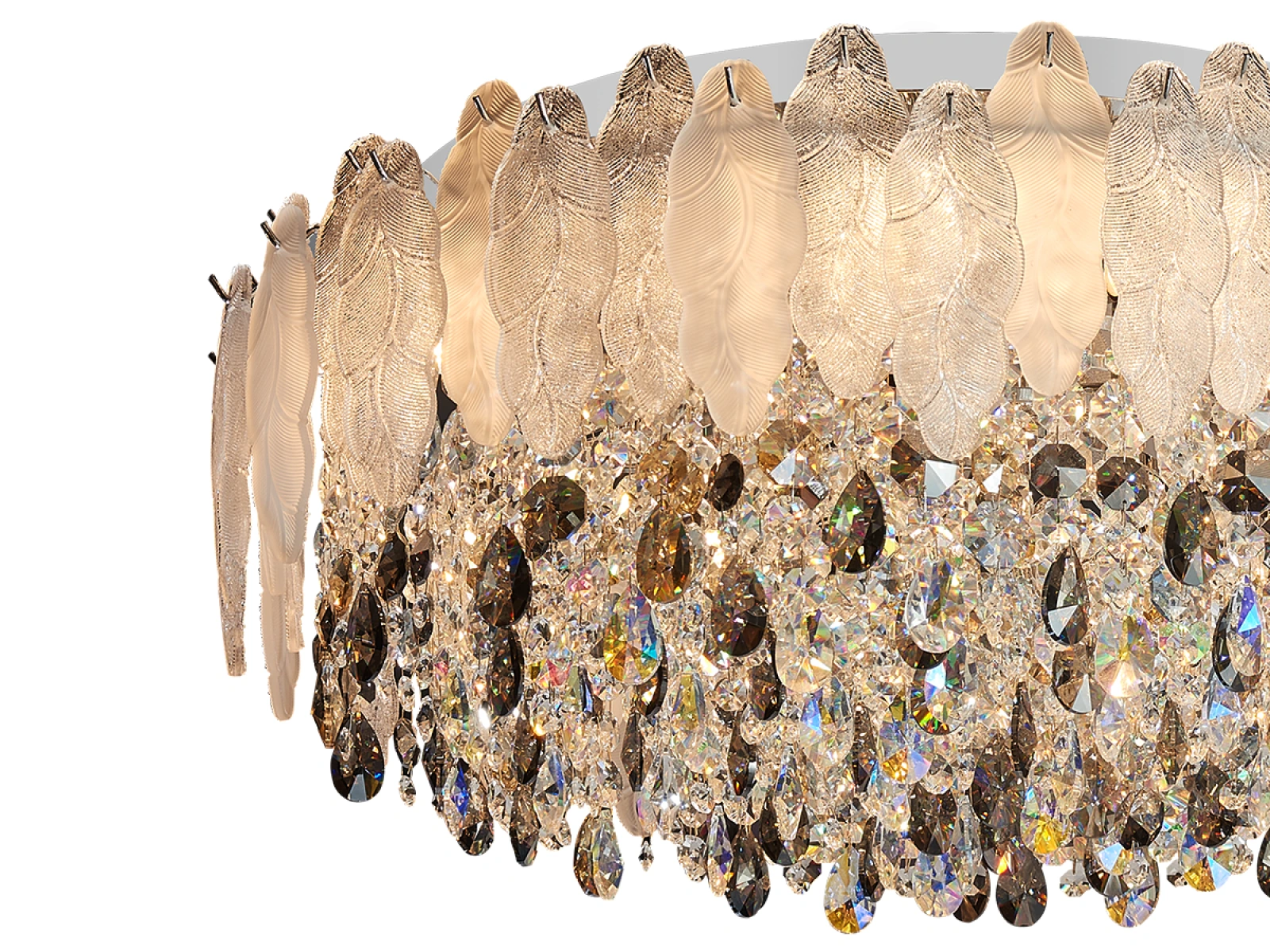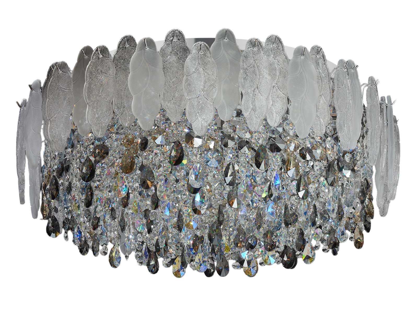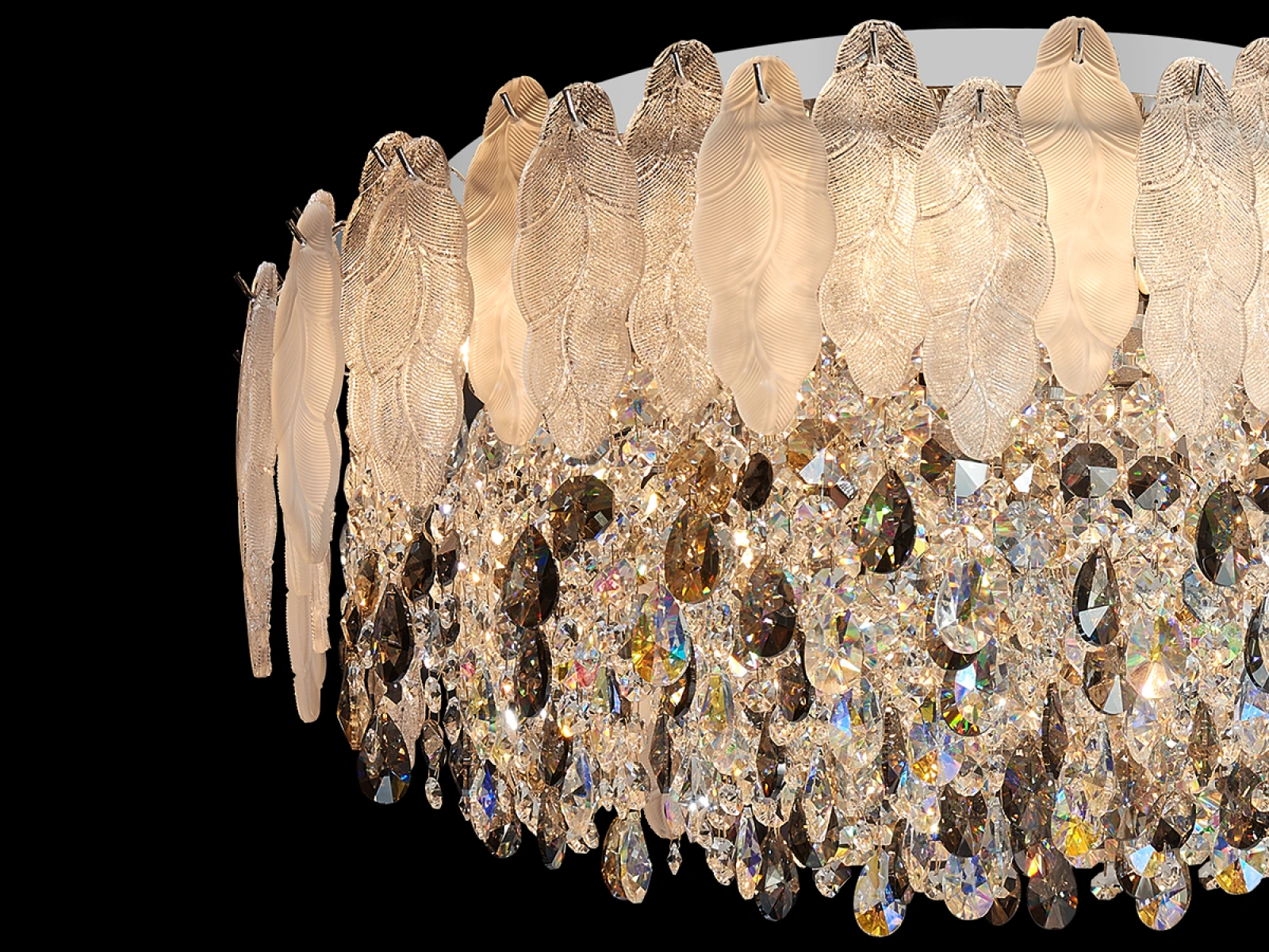 połączenie metalowej konstrukcji ze szklanymi i kryształowymi elementami