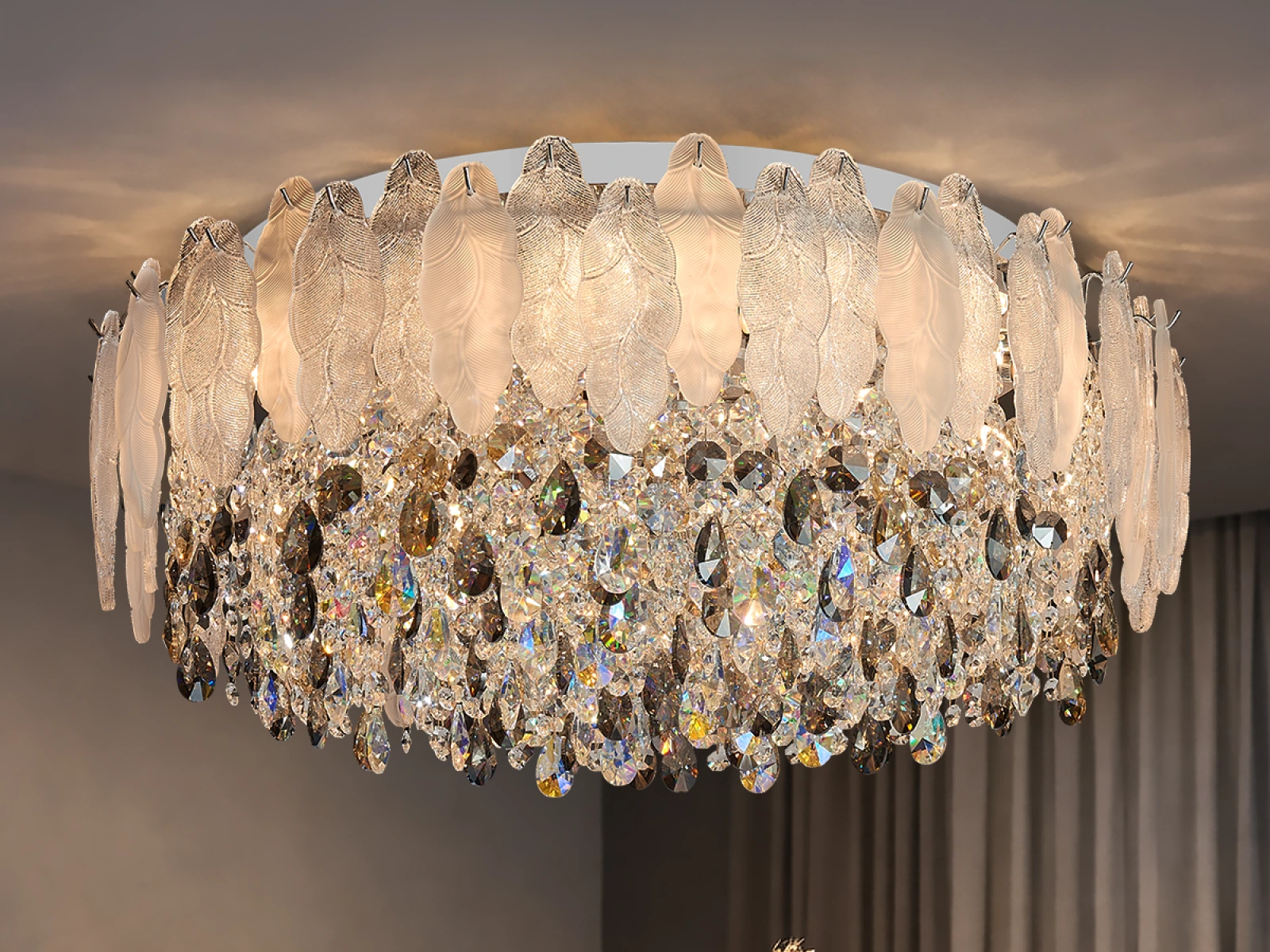 Lampa sufitowa GURU marki VIZARDI to harmonijne połączenie elegancji, subtelnego luksusu i nowoczesnego designu. Dzięki swojemu charakterystycznemu, ale wyważonemu wyglądowi, naturalnie wtapia się w salony, jadalnie, sypialnie i przestrzenie reprezentacyjne, gdzie tworzy przyjazną i stylową atmosferę.