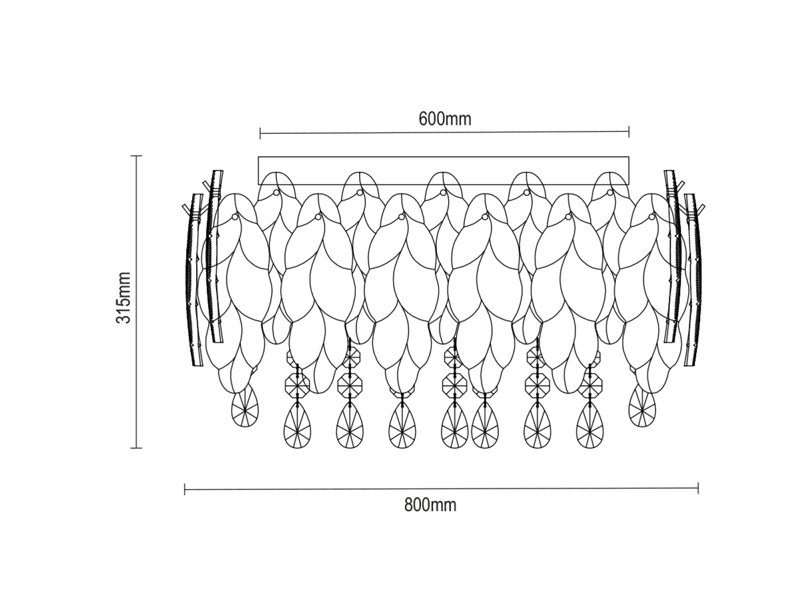 Metalową konstrukcję o wysokiej jakości wykończenia uzupełniają szklane i kryształowe elementy, które delikatnie rozpraszają światło i tworzą subtelny efekt świetlny. Lampa prezentuje się gustownie i ponadczasowo, z dbałością o detale i jakość wykonania.