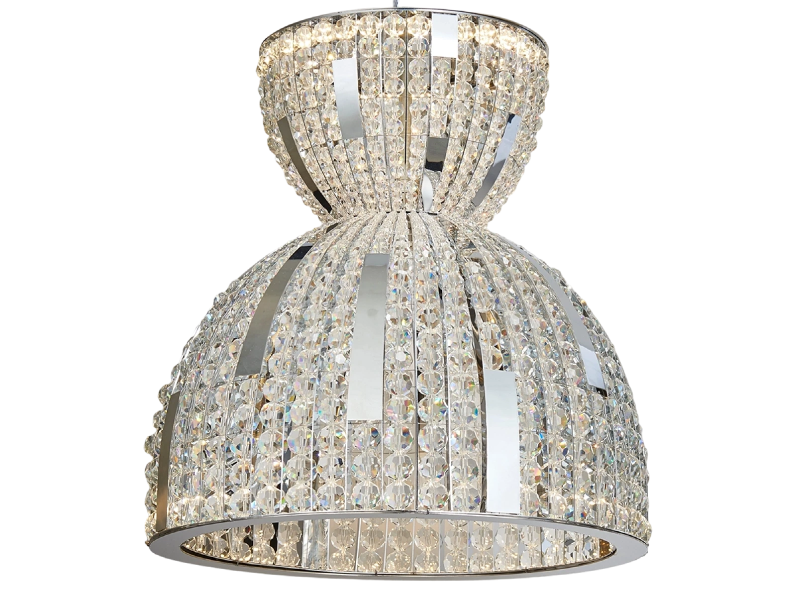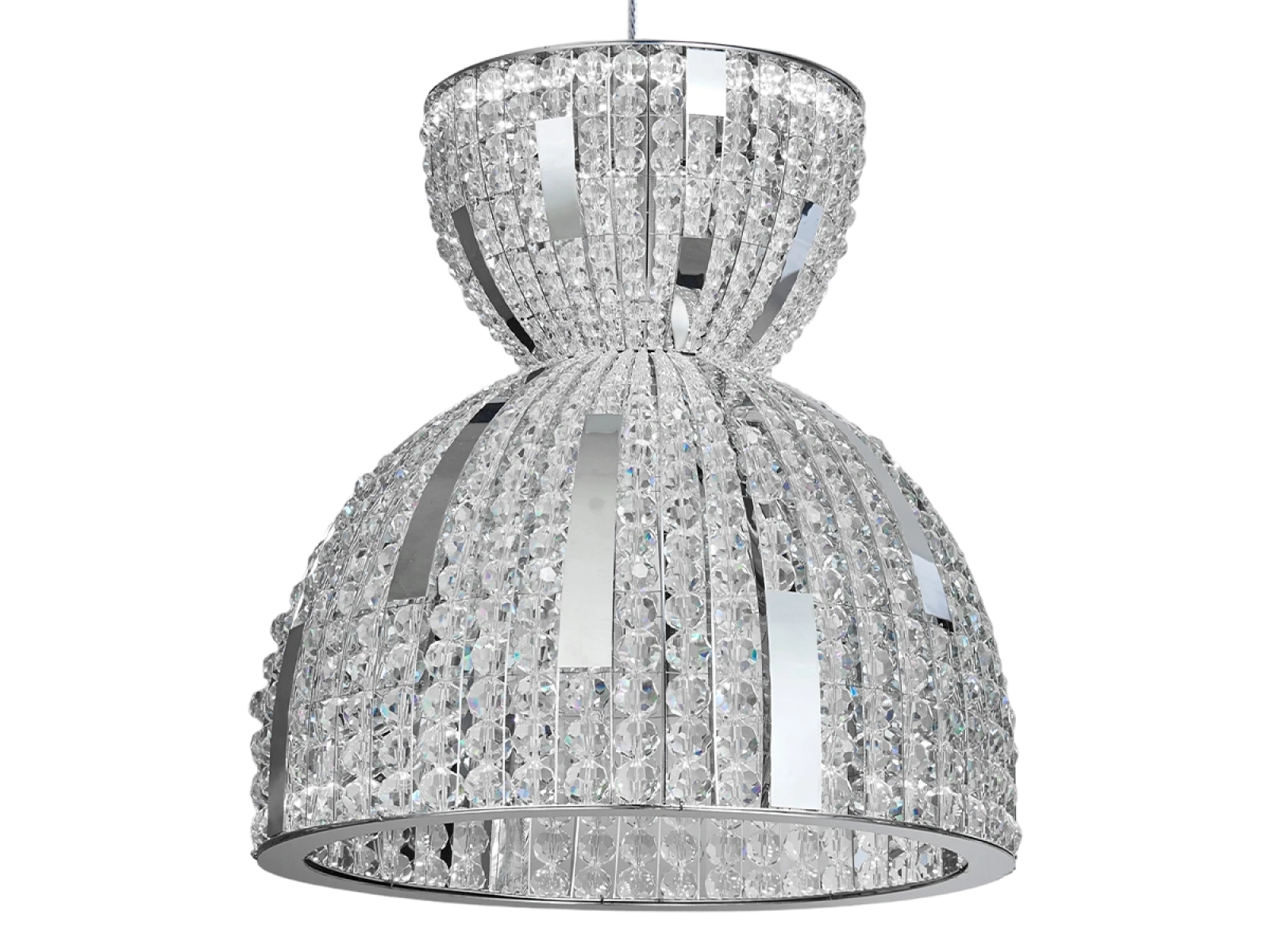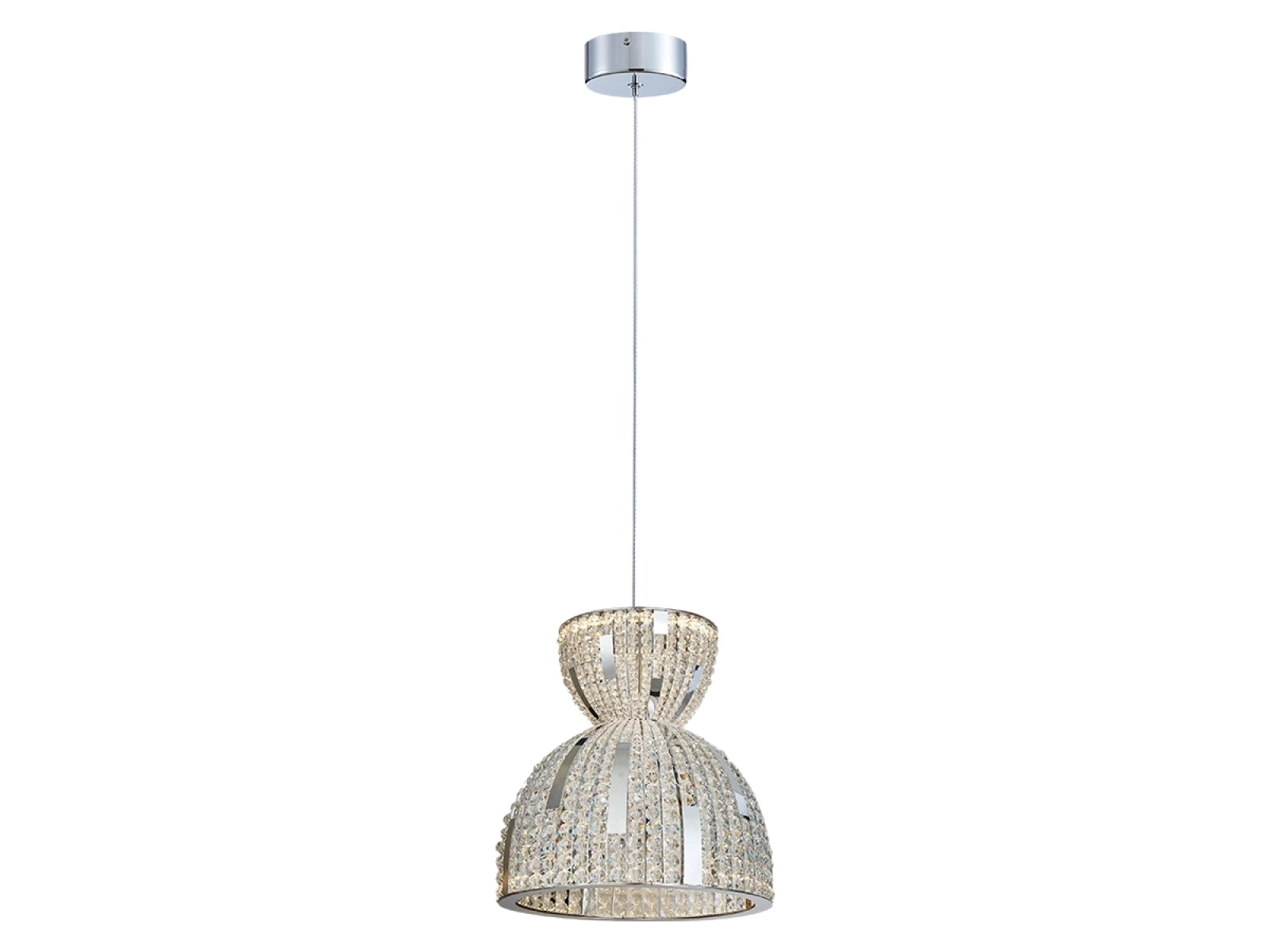 Lampa wisząca LED VIZARDI z serii KATRIA zachwyca eleganckim kształtem i luksusowym designem z bogatymi kryształowymi detalami, które tworzą imponujące efekty świetlne. Delikatnie ukształtowany klosz w połączeniu z błyszczącym chromowanym wykończeniem nadaje oprawie ponadczasowy i reprezentacyjny wygląd.