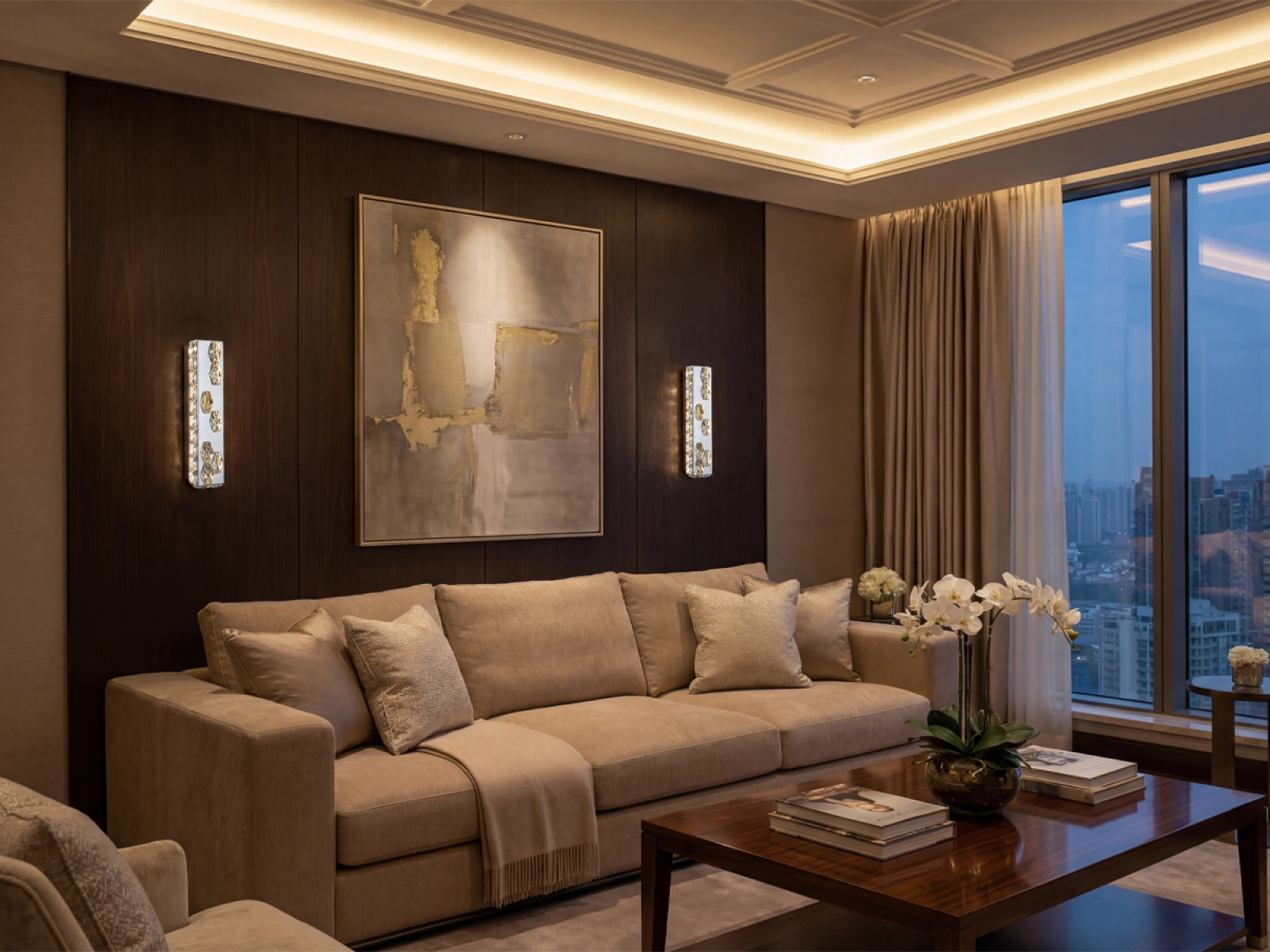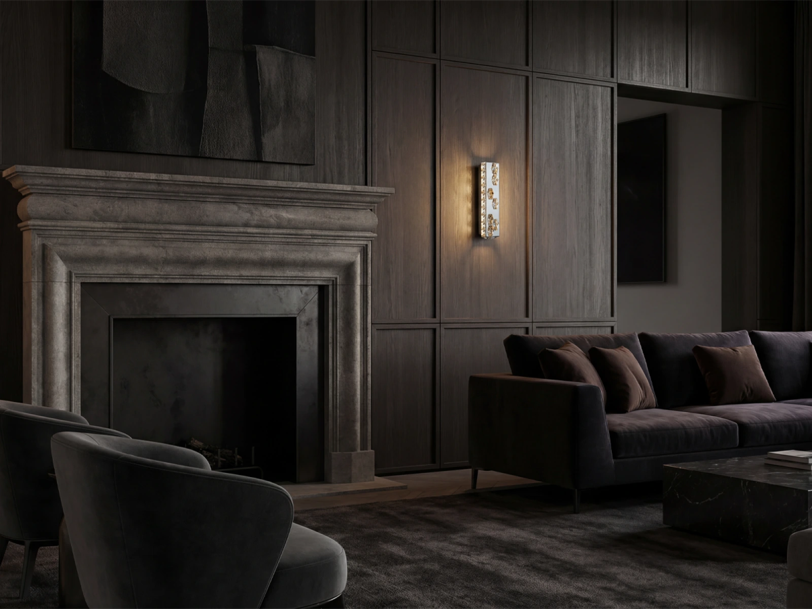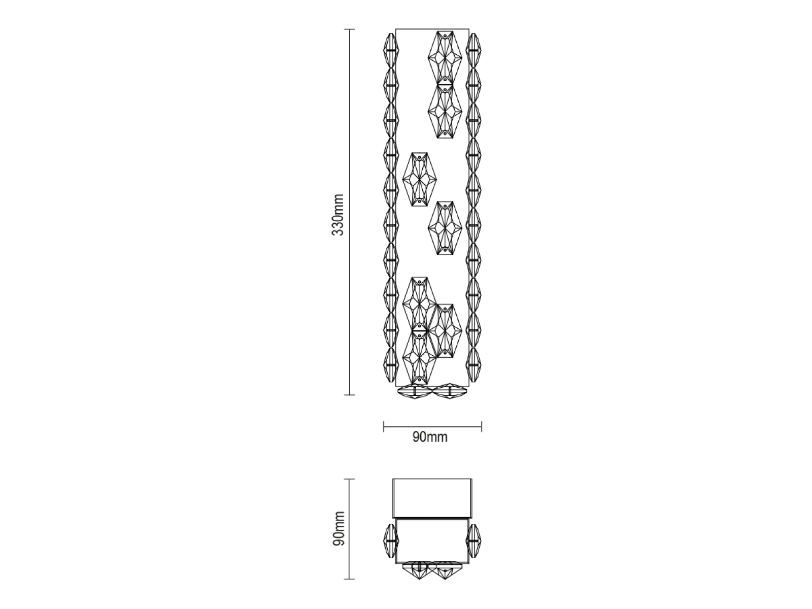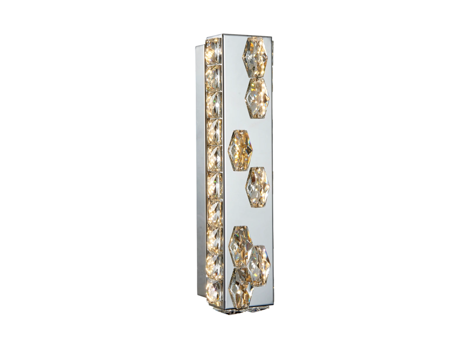 Oprawa wykonana jest z wytrzymałej stali nierdzewnej z chromowanym wykończeniem i szczegółowo wyciętymi kryształami, które podkreślają efekty świetlne. Zaawansowana obróbka materiału gwarantuje jego długotrwałą stabilność i estetykę.