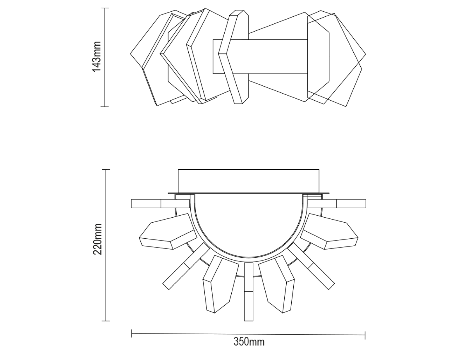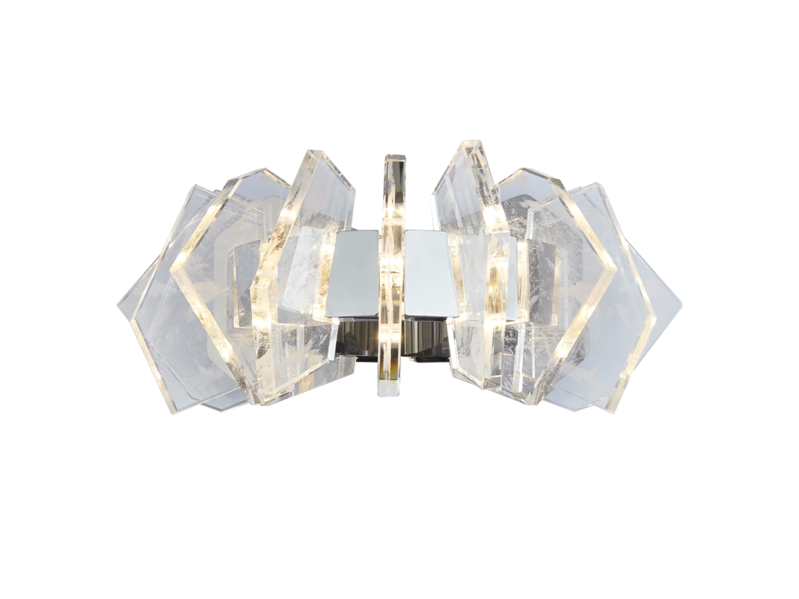 Konštrukcia je vyrobená z kvalitnej ocele s chrómovou povrchovou úpravou a doplnená o originálne usporiadané, precízne brúsené krištáľové prvky, ktoré zabezpečujú intenzívny lom a odraz svetla. Výsledkom je luxusná svetelná atmosféra s výrazným dekoratívnym efektom, ktorá podčiarkne charakter moderného aj reprezentatívneho interiéru.