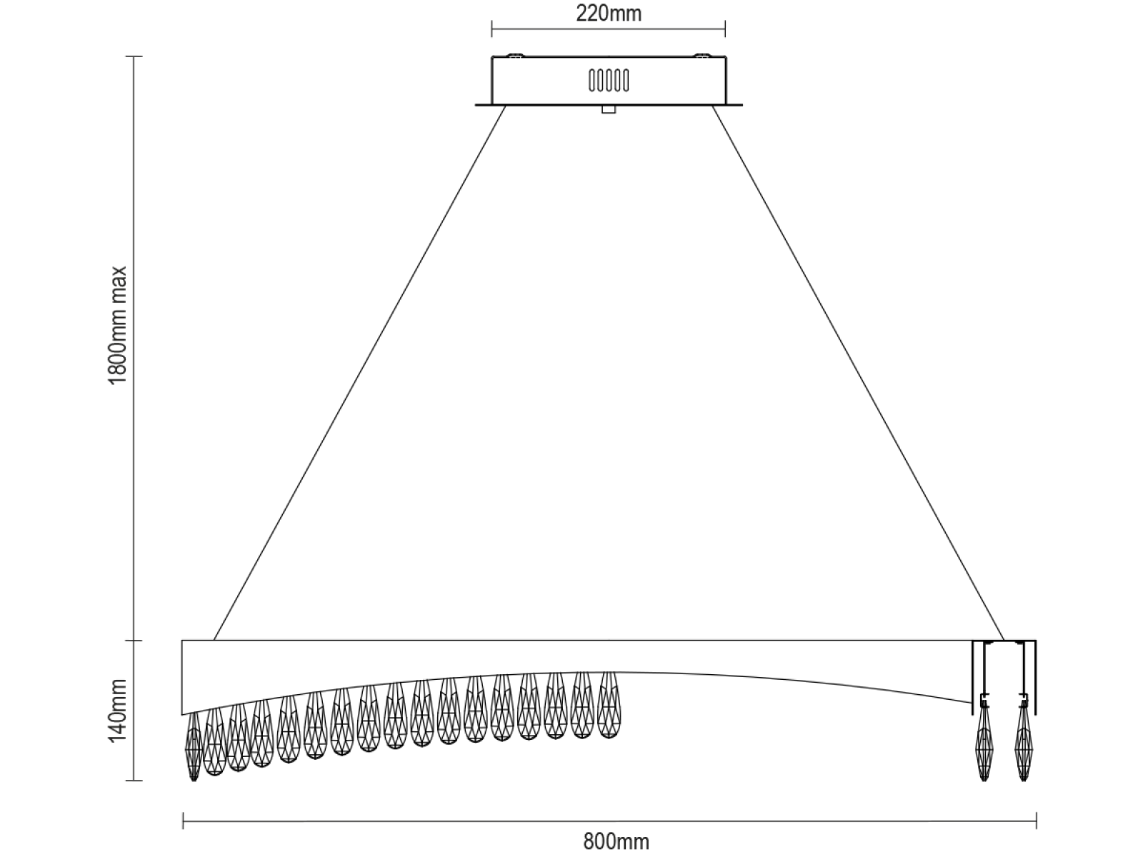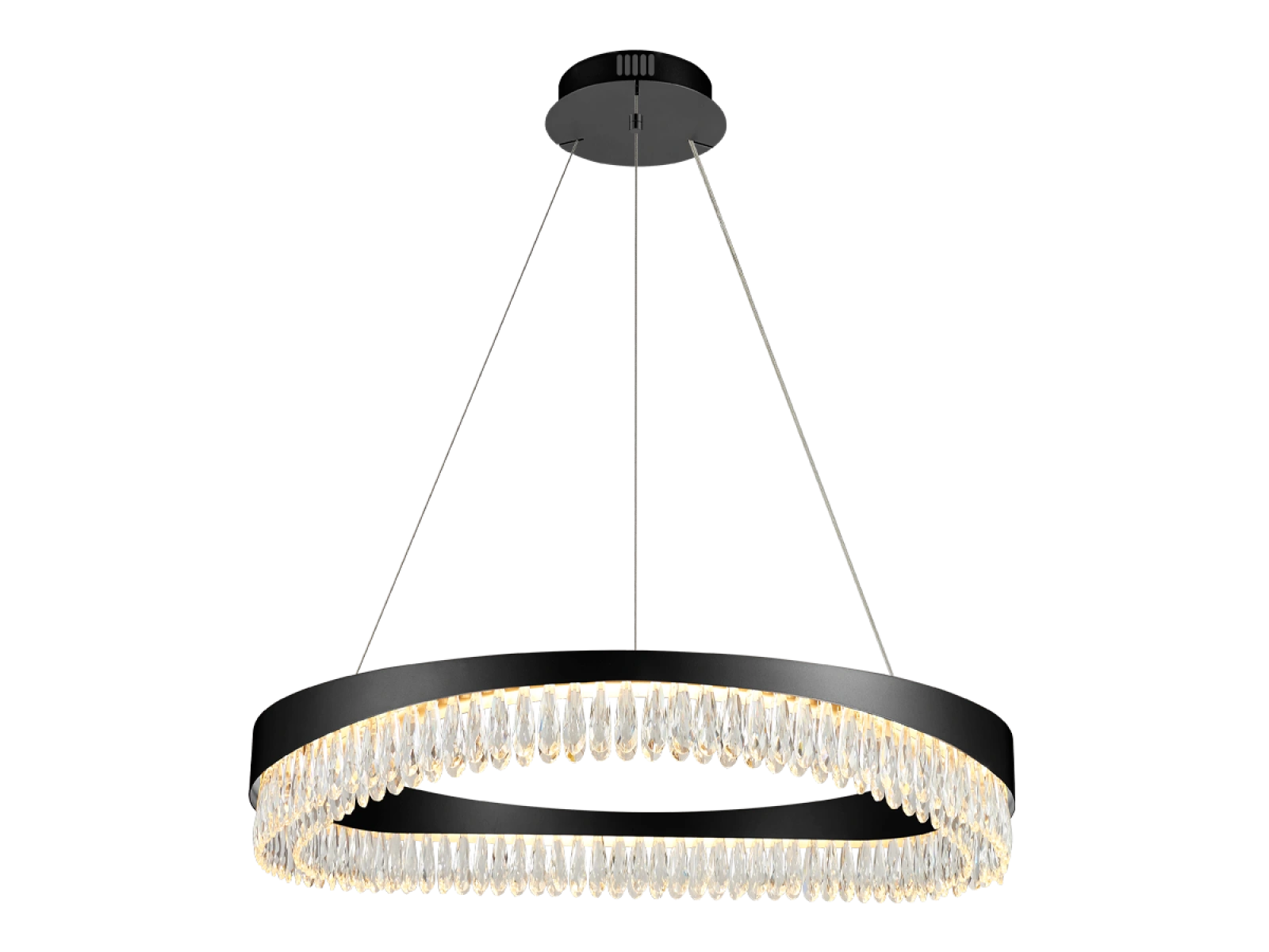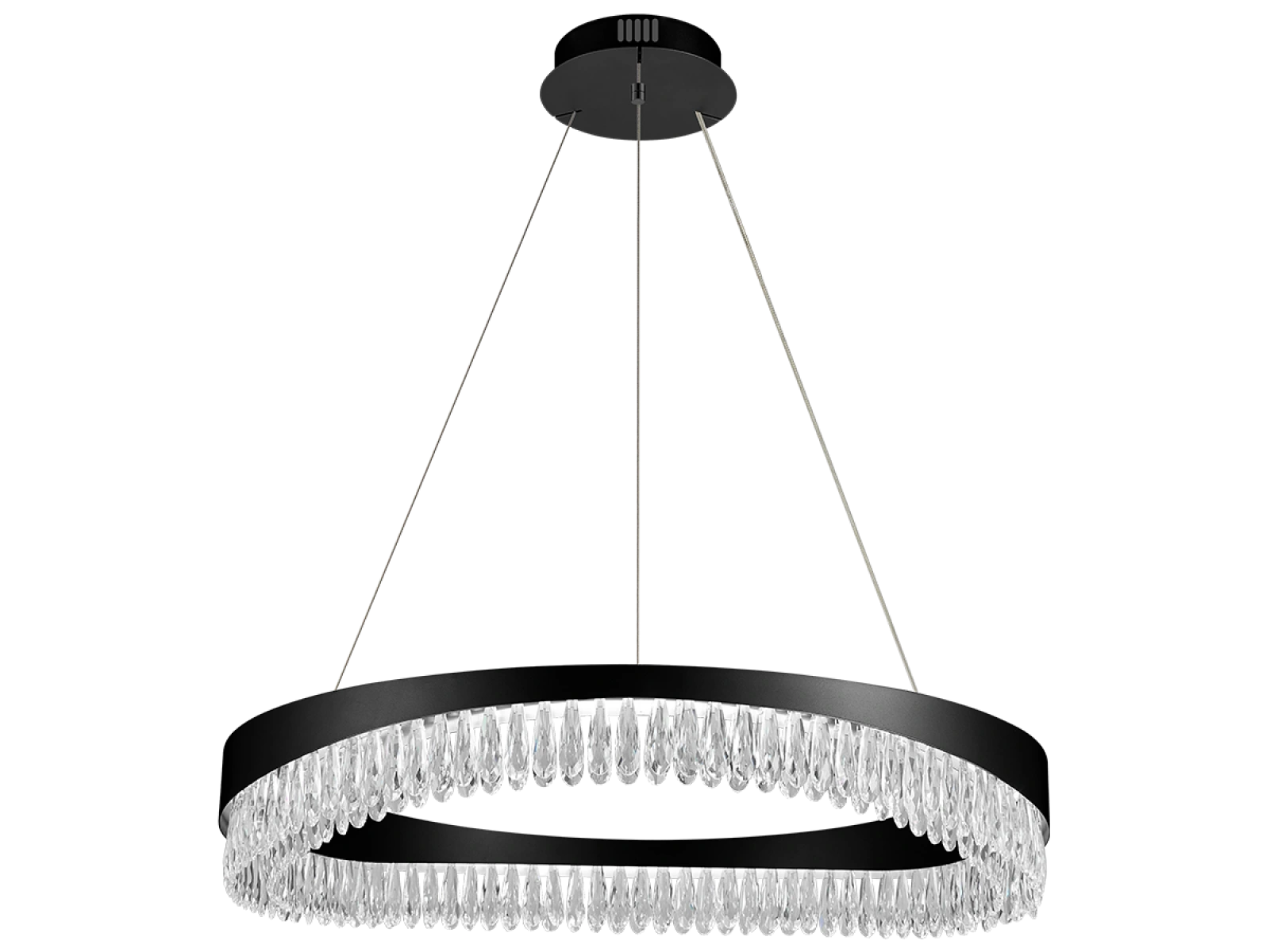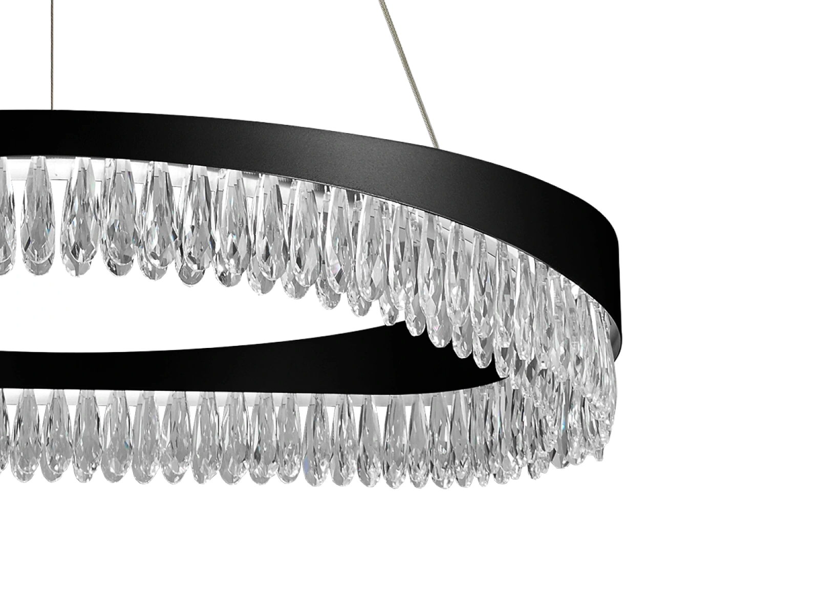 Metalowe wykończenie oprawy ze stali nierdzewnej z wykończeniem premium uzupełniają szczegółowo wycięte kryształy, które podkreślają załamanie i odbicie światła. Nowoczesne wykonanie gwarantuje stabilność materiału i jego estetyczną jakość nawet po długotrwałym użytkowaniu.